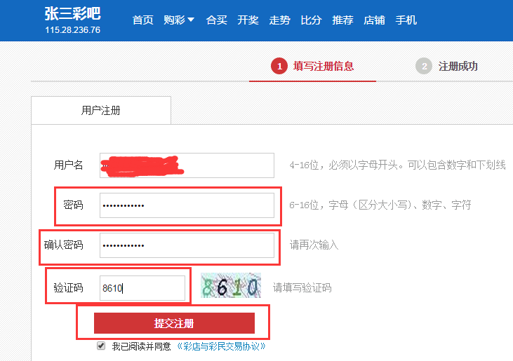 3.进入注册页面,填写用户名、密码等注册信息,填写无误后,点击“提交注册”。